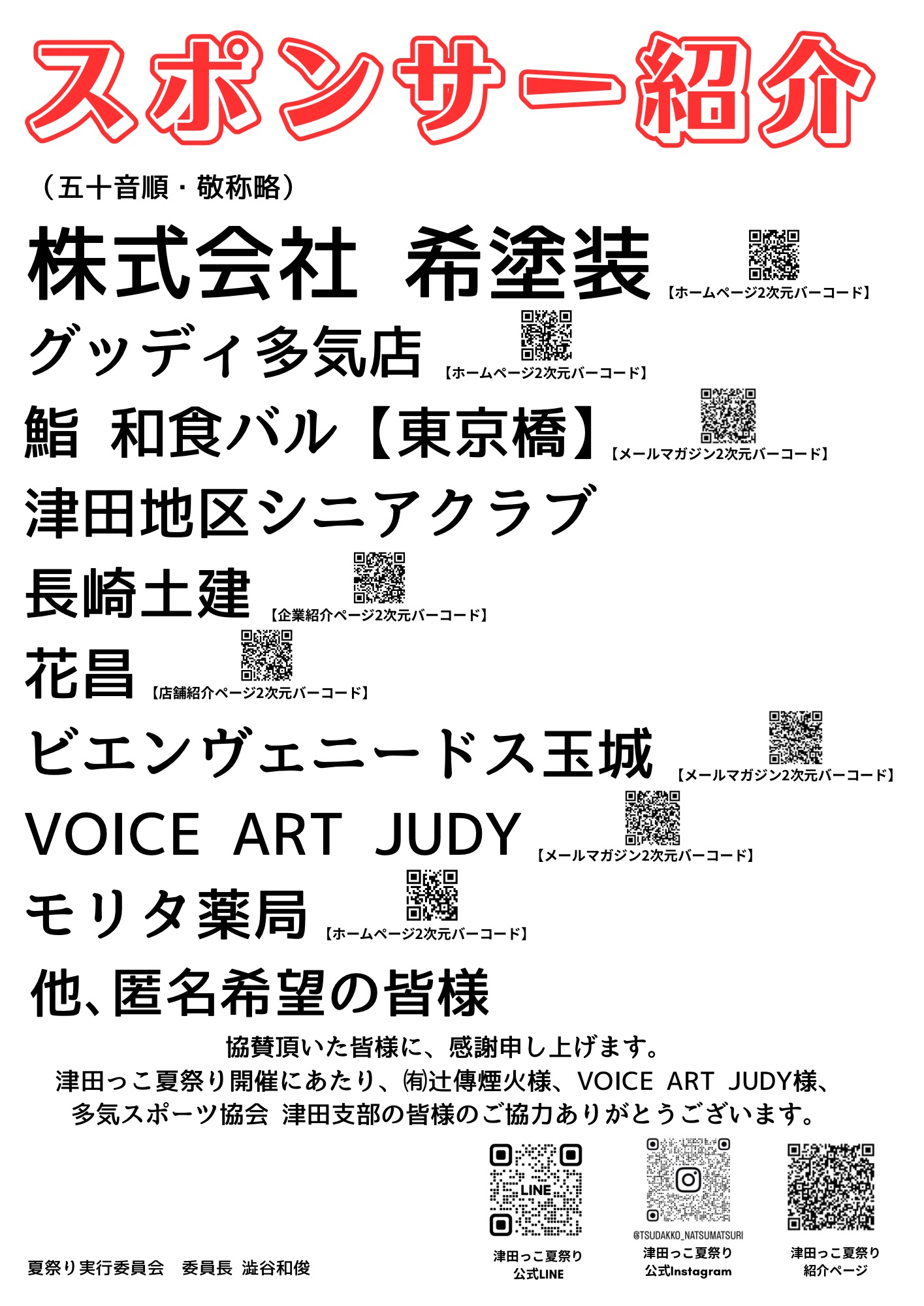 ・津田っこ夏祭り公式LINE:https://lin.ee/jpC3bE9