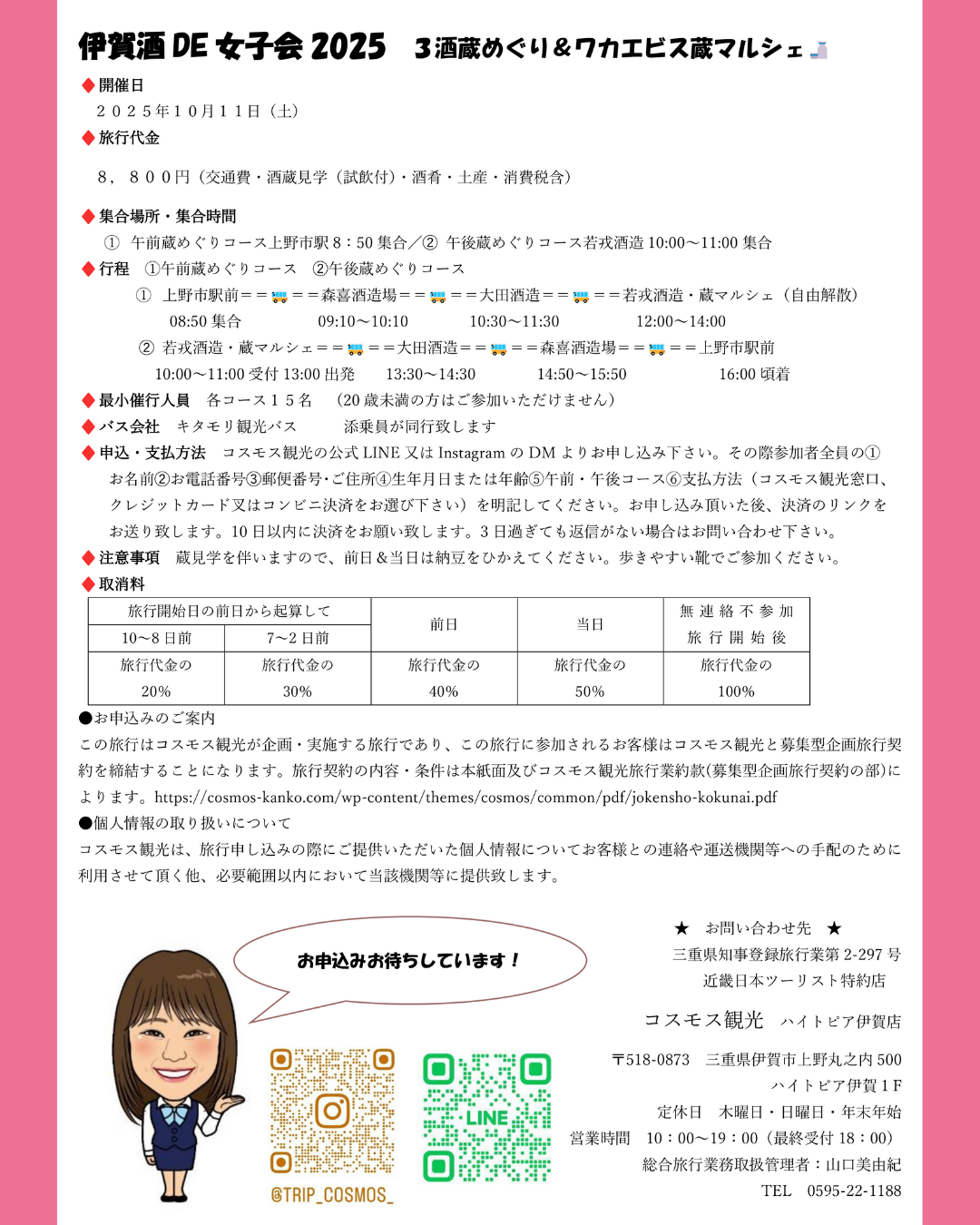 ★8月1日より、コスモス観光(instagramのDMか公式LINE)にて受付開始です。