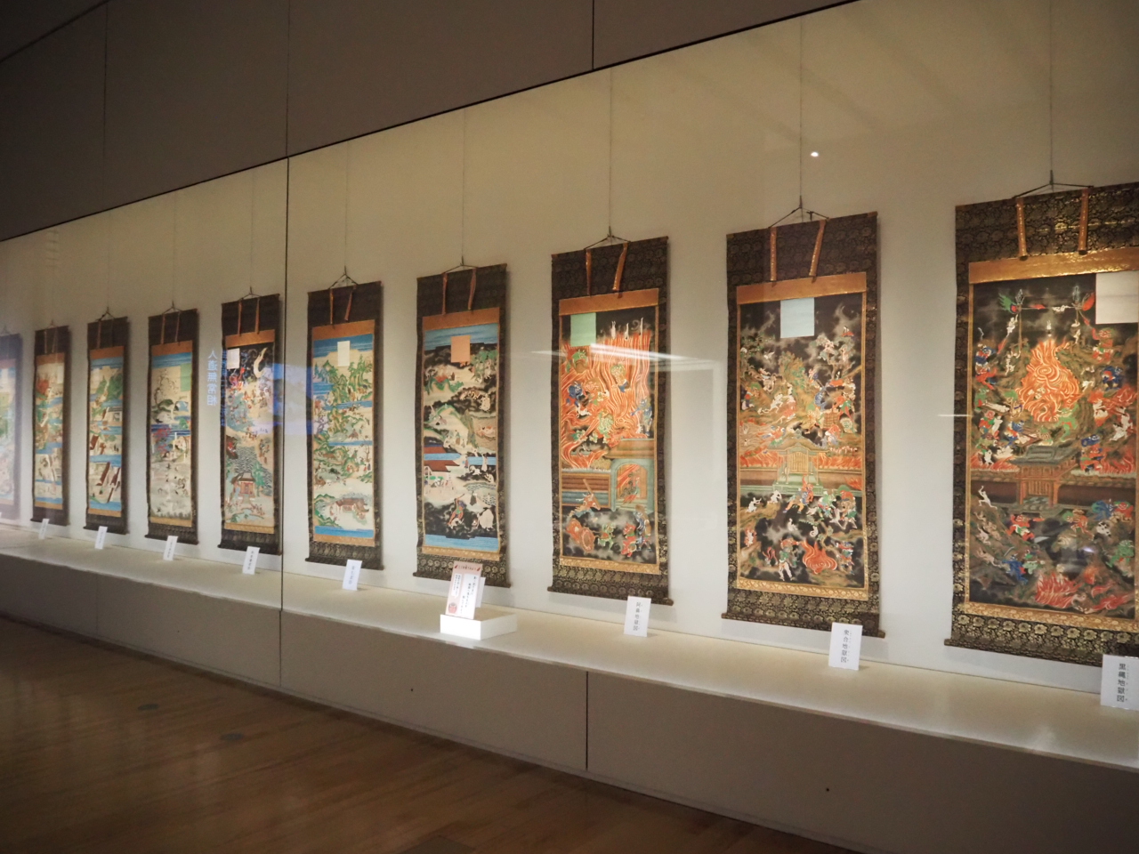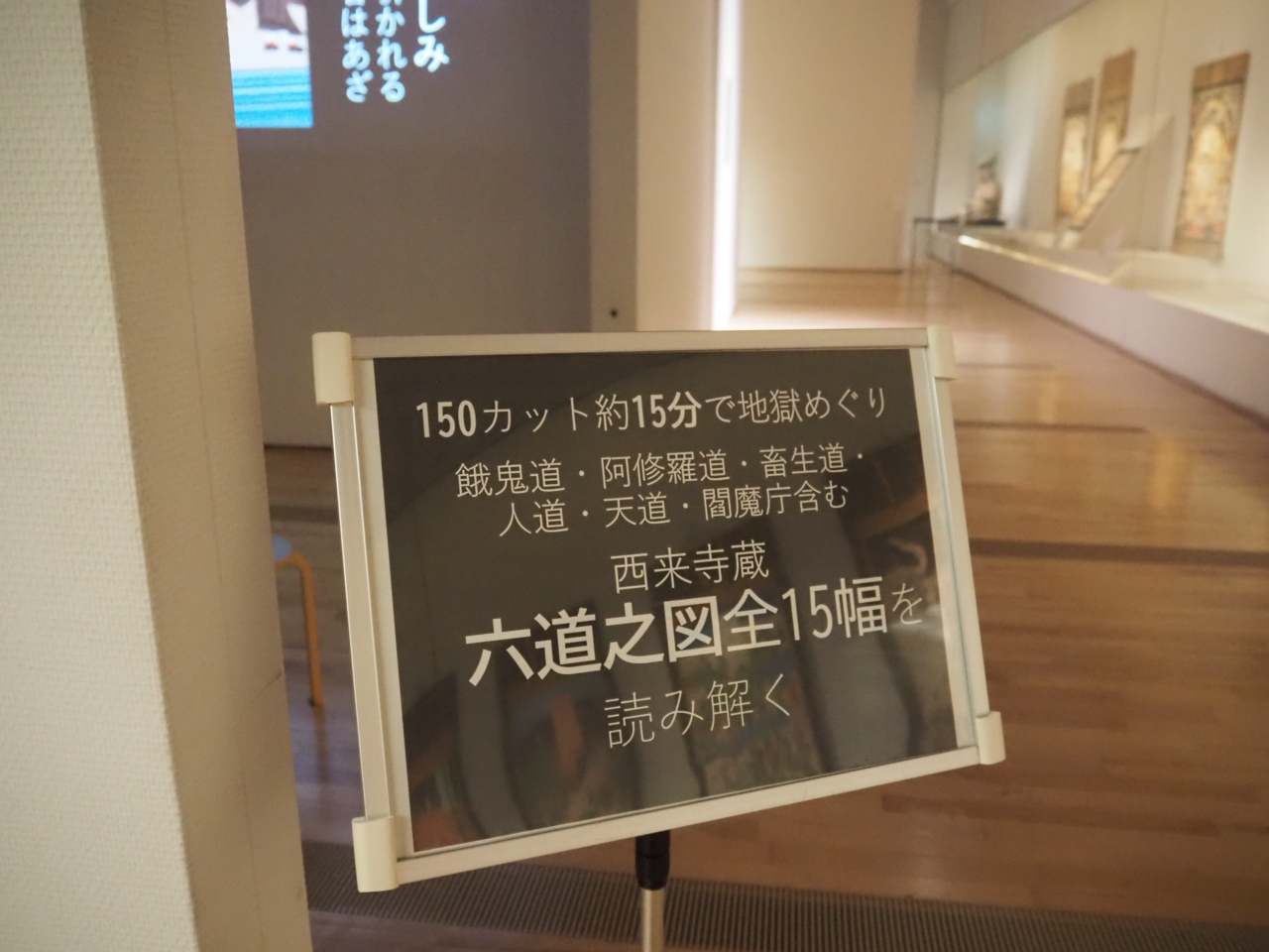 掛け軸の向かいには、スライドを見るスペースがあります。150カットにわたる地獄絵の解説を約15分で見ることができます。掛け軸とスライドの両方を見ることで、地獄絵への理解がより深まります。想像を絶するほど残酷な、精神と肉体の両方を追い詰められる数々の苦しみ。展示会場でも「気分が悪くなりましたら、無理に資料を見ないようにしてください」と注意書きがあるほどです。