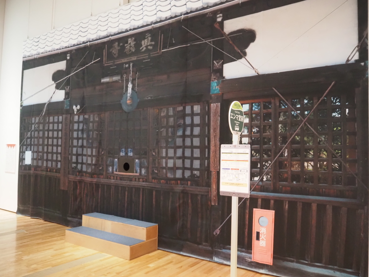 本展では展示資料の撮影は取材以外では禁じられていますが、撮影可能な場所もあるのでご紹介します。こちらは、津市下弁財町にある真教寺閻魔堂を模したもの。実際のお寺には、高さ2メートルもある閻魔王がいらっしゃるとのことで、バス停の名前もそれにちなんで「エンマ堂」なんだそう。会場では、写真を撮ったり、覗き穴から中を覗いたりしてみてください。