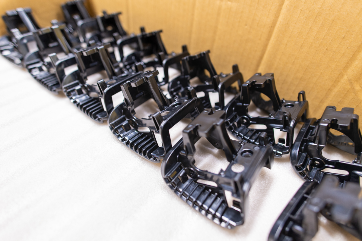 工場内ではプラスチックを成型する射出成形機が29台並ぶ。先代社長(父)の時代は、大手電機メーカー1社の孫請け工場だった。現在でも2次請けのポジションで仕事をしている。しかし、製造する部品は1社のものではなく、様々な自動車や住宅のメーカーのもの。したがって29台の射出成形機ではそれぞれ異なる製品をつくり、また期間に応じて生産する部品の形状も変わる、少量多品種体制だ。また自動車部品などはモデルチェンジのスパンも短く、常に次回の試作と、現在の部品の製造のタイミングが重なっている。