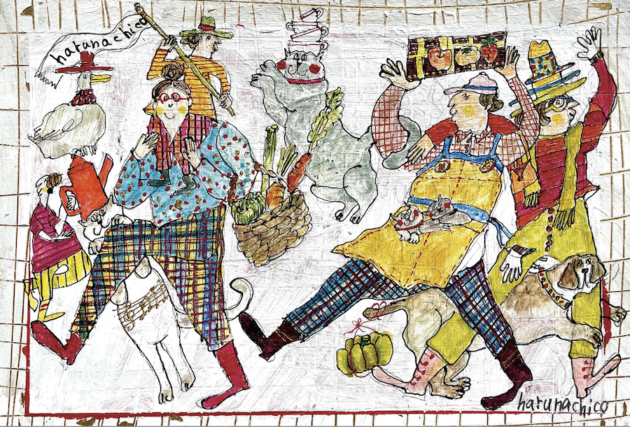 絵画作品のほか、harunachicoさんの手書きの絵が施された洋服、小物、雑貨などを展示販売します。