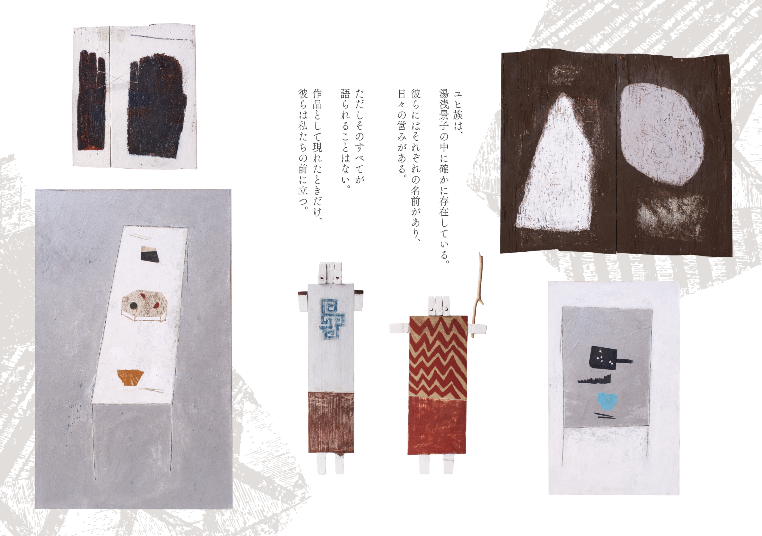 本展では、湯浅さんの中に存在する“ユヒ族”と、彼らの暮らしにまつわるモノなどを表現した作品、約50点を展示します。静かに存在感を示す作品群。是非、ご高覧ください。