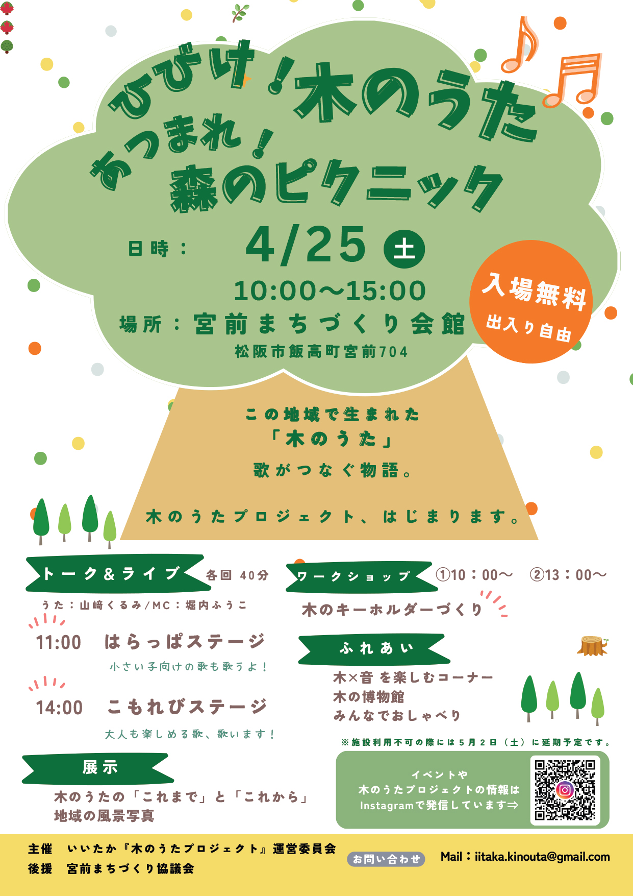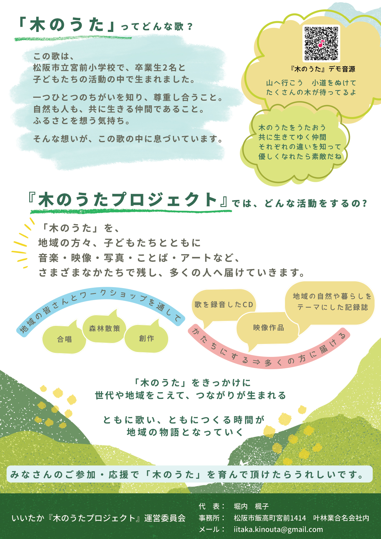 「木のうた」を次世代へつなぐ取り組みとして、「ひびけ、木のうた ―つながりを育む地域のうた― 」と題し、通称:『木のうたプロジェクト』を立ち上げました。