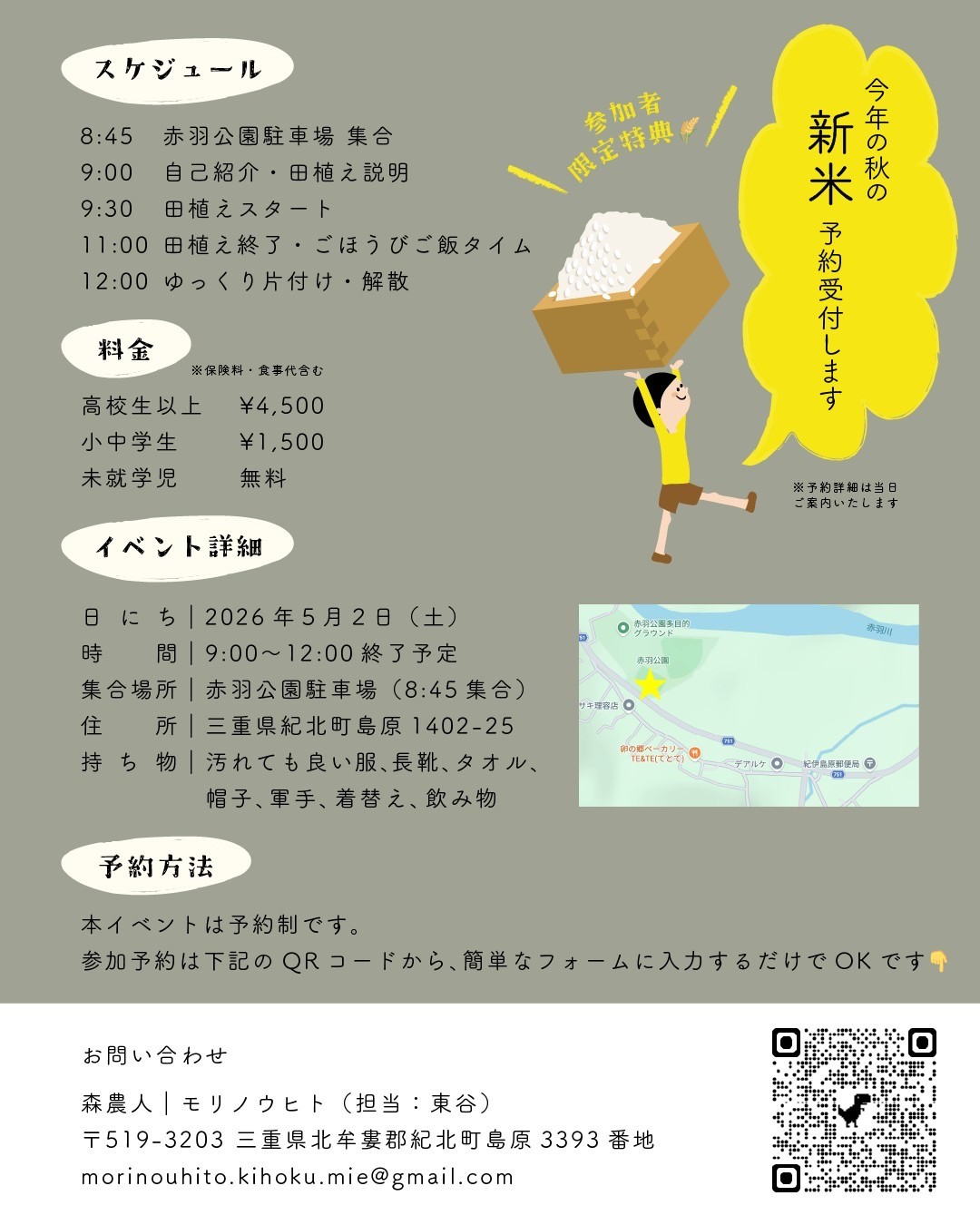 紀北町で田植えイベントやります!GWに遊び来てくださいね!!